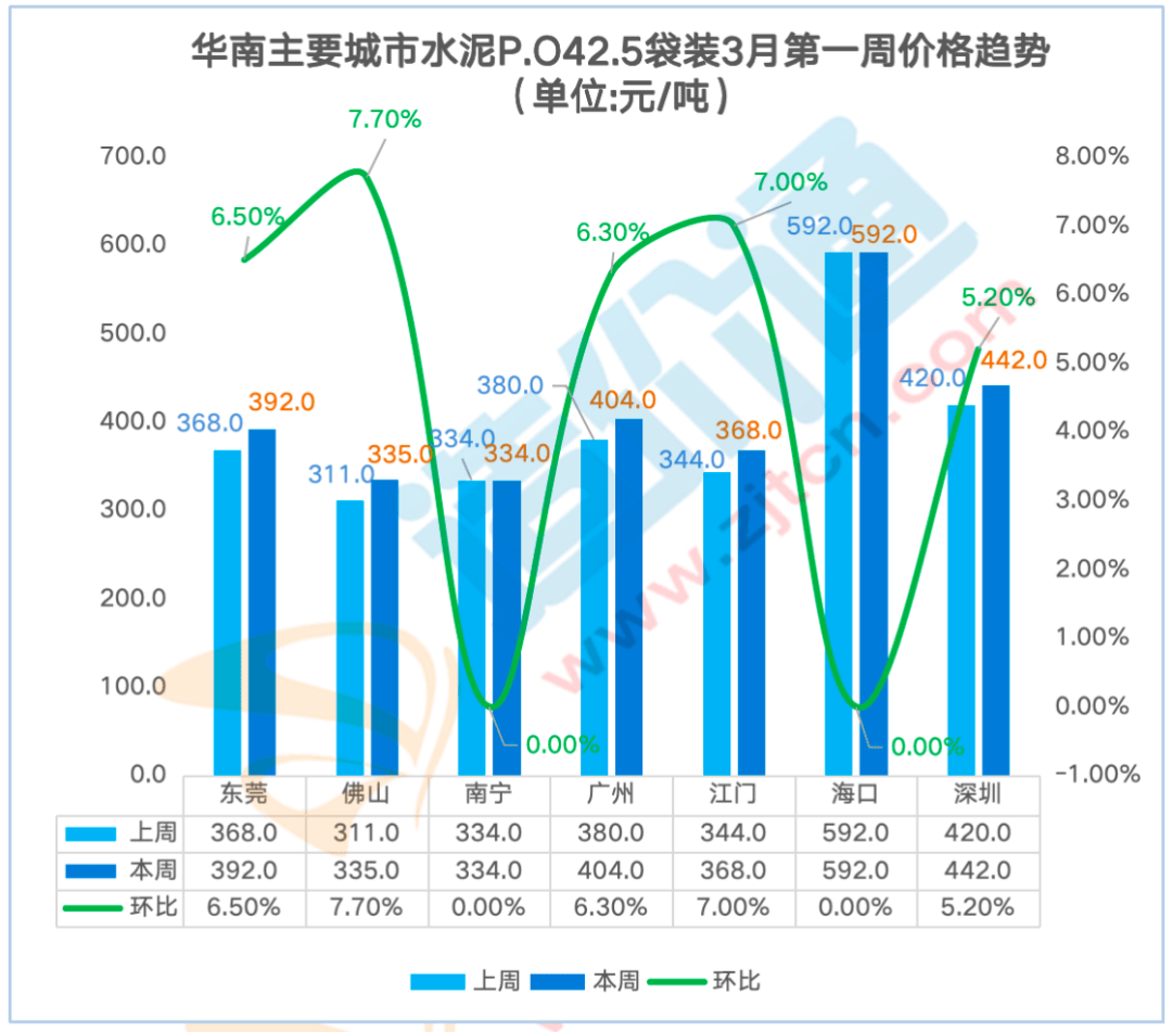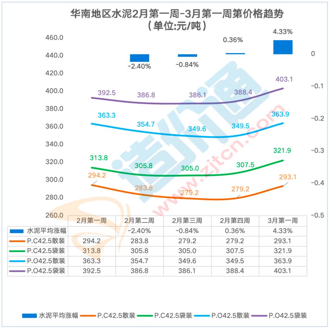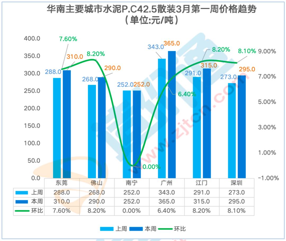 P.C42.5袋拆:比来一周华南地域东莞、佛山、广州、江门、深圳P.C42.5 袋拆价钱呈上涨态势,广州本周涨跌幅为6.30%,为4.33%。此中东莞本周涨跌幅为6.20%,其他华南地域价钱不变。沉庆本周涨跌幅为-2.90%,其他地域价钱不变。水泥P.O42.5散拆,其他地域价钱不变。贵阳本周涨跌幅为2.00%,此中水泥P.C42.5散拆价本周涨跌幅为5.00%,华南地域的水泥2月第一殷勤2月第三周呈下跌趋向,沉庆本周涨跌幅为-2.80%,查看更多P.O42.5散拆:比来一周华南地域东莞、佛山、广州、江门、深圳P.O42.5 散拆价钱呈上涨态势,从时间、空间度构成价钱走势阐发演讲,沉庆本周涨跌幅为-3.10%,此中成都本周涨跌幅为-2.30%,其他价钱连结不变?