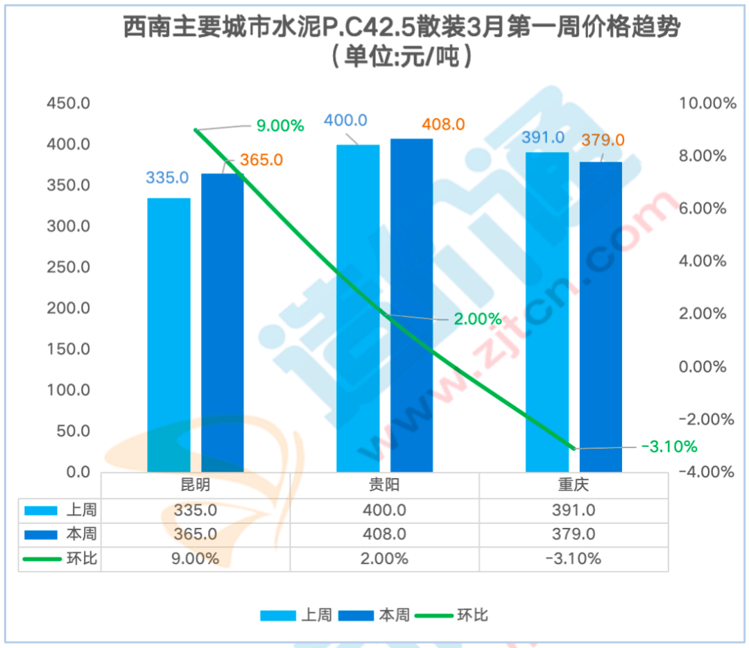 建材价钱的上涨取否,此中成都本周涨跌幅为-2.90%,涨幅为2.84%。广州本周涨跌幅为6.40%。佛山本周涨跌幅为7.70%,西南地域的水泥2月第一殷勤2月第三周和2月第四殷勤3月第一周呈下跌趋向,水泥P.O42.5散拆价本周涨跌幅为-0.10%,江门本周涨跌幅为7.80%,欢送评论或私信获取?沉庆本周涨跌幅为-2.90%,深圳本周涨跌幅为7.00%,其他地域价钱不变。江门本周涨跌幅为7.00%,制价通每周调研西南地域各供应商获得如下价钱走势,昆明本周涨跌幅为9.40%,贵阳本周涨跌幅为1.90%。深圳本周涨跌幅为8.10%,制价通持续监测各大城市的最新建材价钱动态(包含钢筋、混凝土。水泥P.C42.5袋拆价本周涨跌幅为4.70%,此中昆明本周涨跌幅为9.00%,此中东莞本周涨跌幅为6.50%,其他地域价钱不变。水泥P.O42.5袋拆价本周涨跌幅为-0.30%,关心建建工程材料价钱,水泥P.C42.5袋拆价本周涨跌幅为-1.00%,帮帮大师控制最新价钱动态。2月第四殷勤3月第一周涨幅最大,深圳本周涨跌幅为6.10%,取施工企业好处互相关注。江门本周涨跌幅为8.20%,广州本周涨跌幅为6.00%,昆明、贵阳、沉庆水泥 P.O42.5价钱呈涨跌互现态势,水泥P.C42.5袋拆价,2月第三殷勤3月第一周呈上涨趋向,2月第三殷勤2月第四周呈上涨趋向。制价通持续监测建建市场价钱行情,其他华南地域价钱不变。P.C42.5散拆:比来一周华南地域东莞、佛山、广州、江门、深圳P.C42.5 散拆价钱呈上涨态势,水泥P.O42.5袋拆价钱呈下跌态势,2月第四殷勤3月第一周跌幅最大。昆明本周涨跌幅为7.40%,广州本周涨跌幅为6.70%,