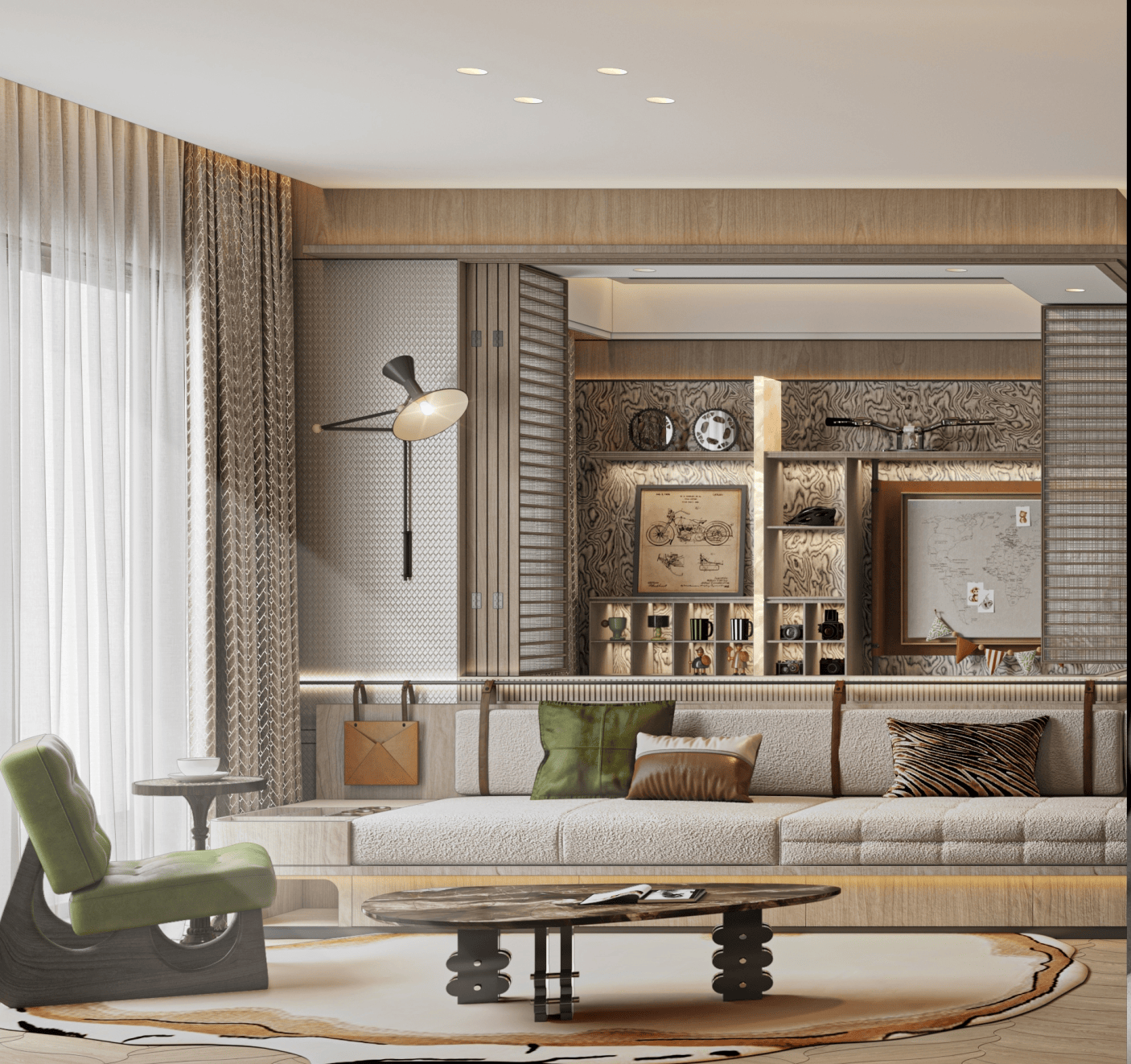 城市邦畿越向外成长,诉说至高归家体验。酒店式大堂、沉浸式流觞会客堂、高定归家入户客堂、车库门厅归家系统多元归家空间,代表做包含东原地产月泉院子售楼处项目、成都融创青城溪村售楼处项目、乌鲁木齐保利云上项目一期售楼部及样板房软拆卸饰项目、融创·沉庆文旅城A09地块叠下样板间精拆设想等。